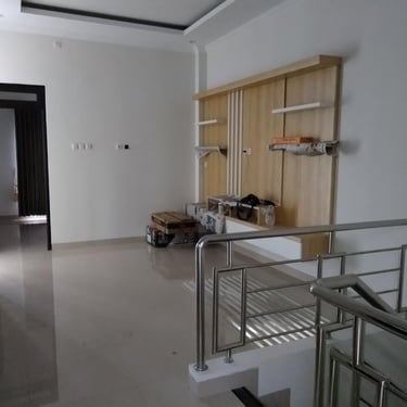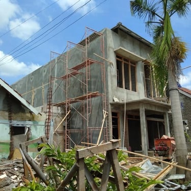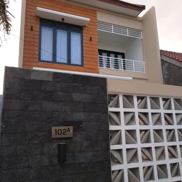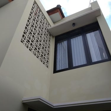 Fasad minimalis dengan permainan GRC dan profil ban-ban an