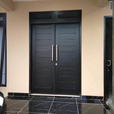 Pintu utama kupu tarung kayu jati finish melamin doff hitam